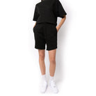 The shorts feature a roomy back patch pocket that can also fit a full-size smartphone, blending practical storage with a clean, minimalist design.