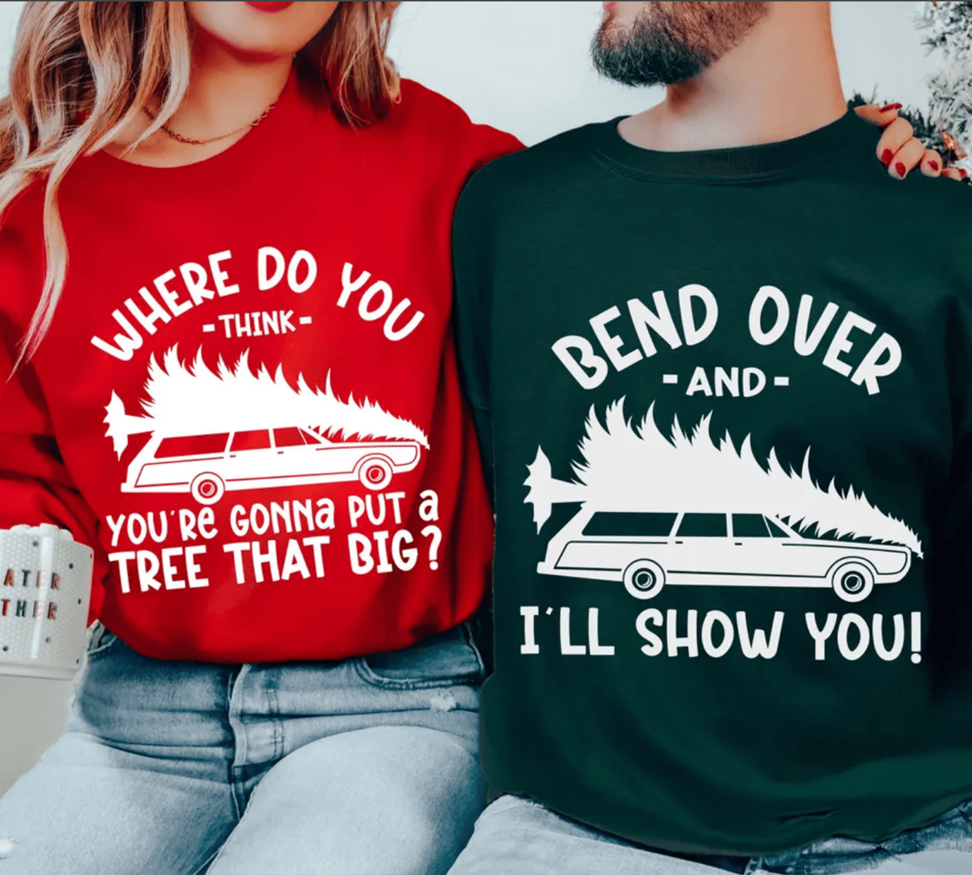 Apportez des rires et l'esprit des fêtes à votre garde-robe avec notre Où pensez-vous que vous allez mettre un arbre aussi grand ? Pulls pour couples! Inspirés d'un classique des films de Noël, ces pulls assortis sont parfaits pour les couples qui aiment garder les choses festives et amusantes. Le design ludique des dialogues fait de cet ensemble un incontournable pour les fêtes de fin d'année, les photos de famille ou les soirées douillettes.